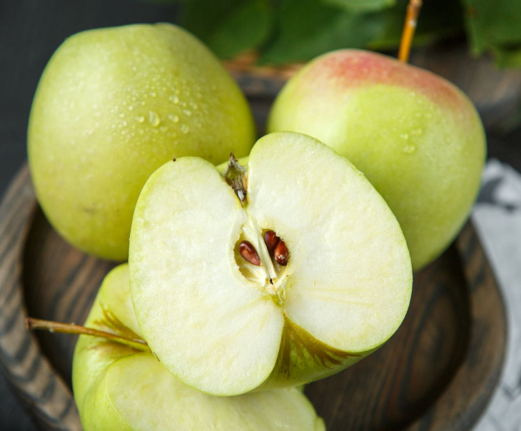 Сочные яблоки сорта “Голден” прибыли к нам из солнечного Краснодарского края. Внешне они отличаются золотисто-зеленой, иногда желтой окраской и кремовой мякотью. Яблоки имеют плотную кожицу с шероховатой поверхностью и нежную, сладкую сердцевину. Все плоды проходят отбор и сортируются вручную. Яблоки могут дозревать в процессе хранения.