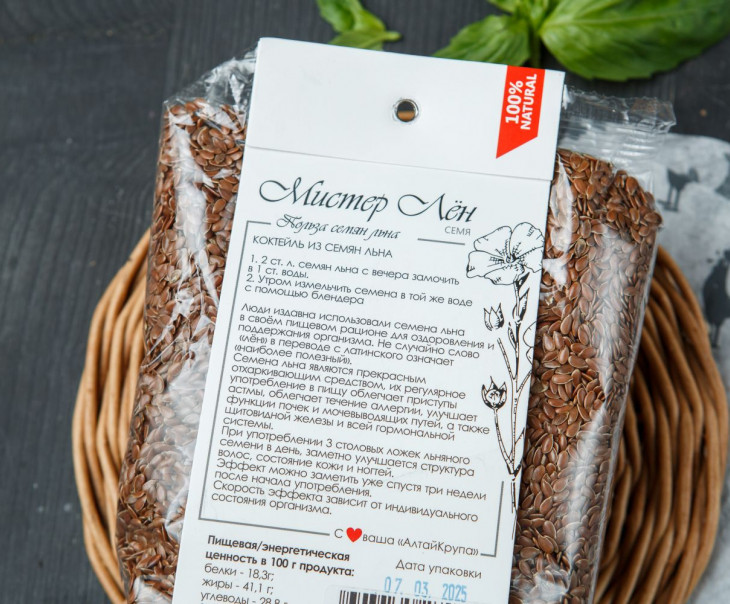 Семена льна содержат жирные кислоты Омега-3 и Омега-6, необходимые для клеток организма. Продукт помогает снизить уровень холестерина в крови.