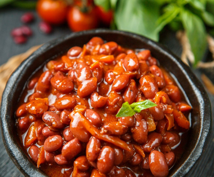 Фасоль с овощами в томатном соусе — сытное и питательное блюдо, которое можно подавать самостоятельно или в качестве гарнира. Сама по себе фасоль чрезвычайно богата растительным белком, витаминами группы В, А, К, бета-каротином, калием, кальцием, кремнием и магнием. Это блюдо превосходно насыщает, восполняет запас энергии и подходит для спортивного, вегетарианского и постного меню.